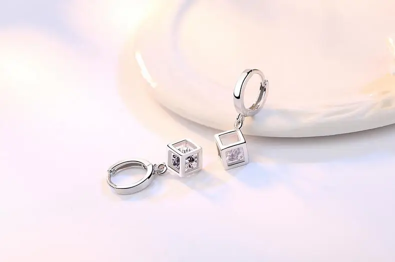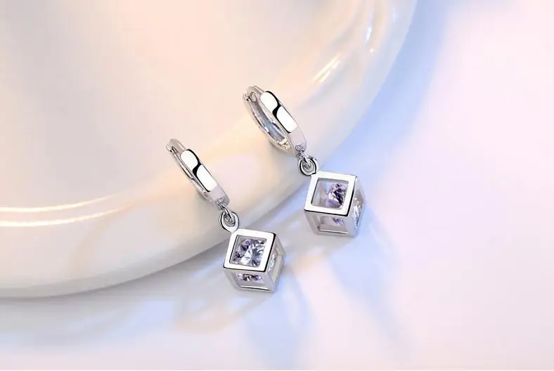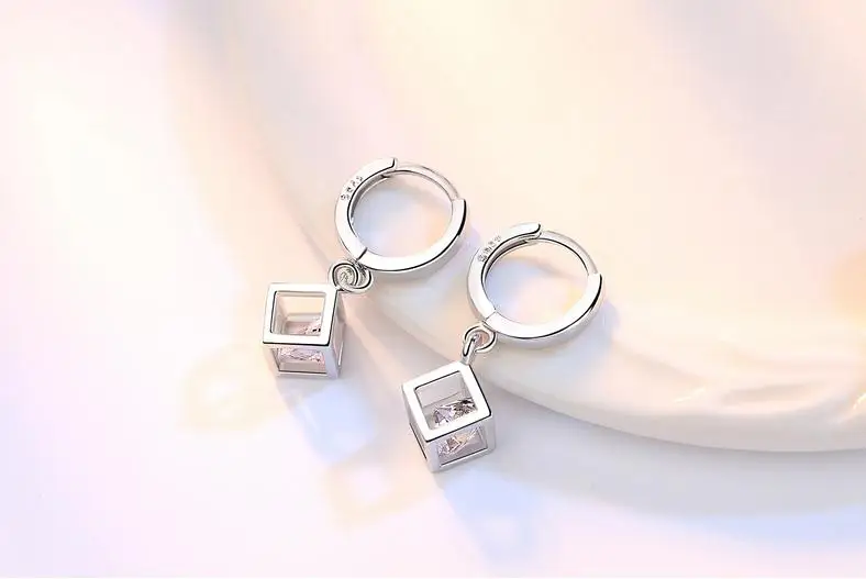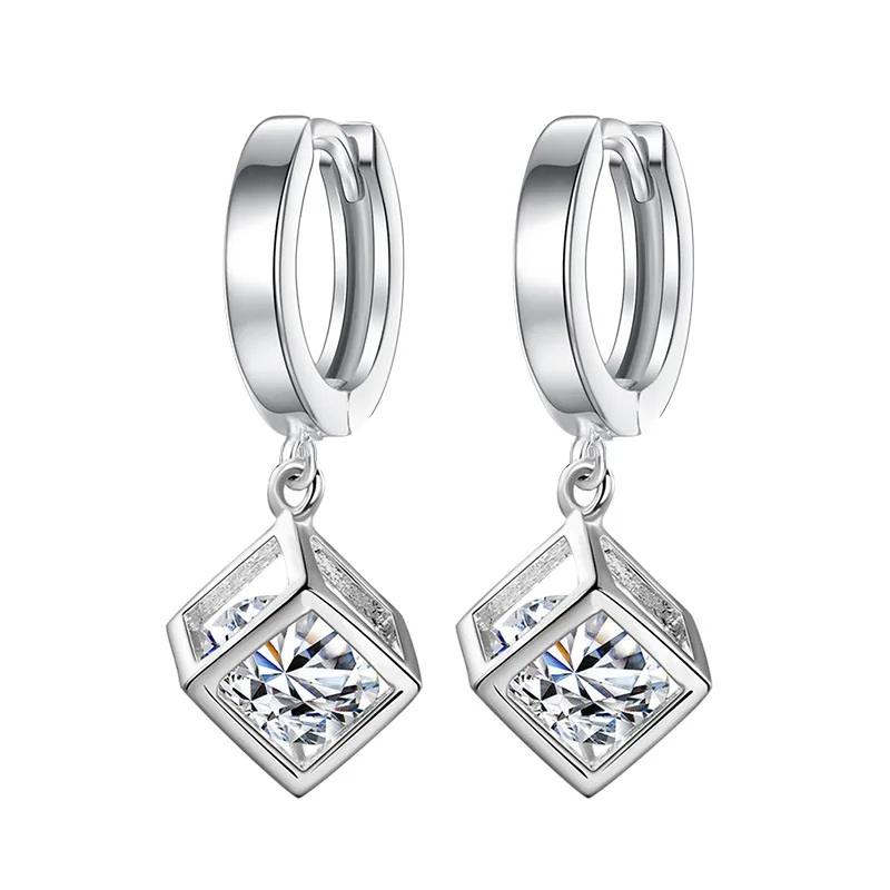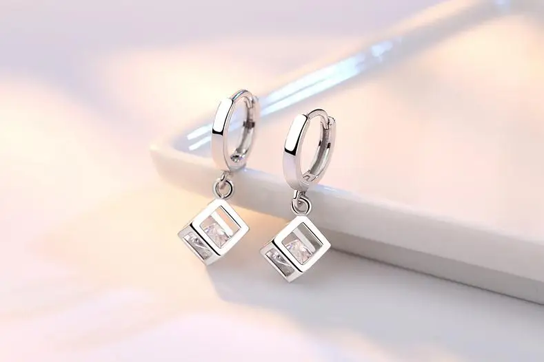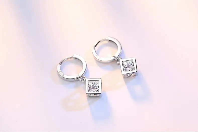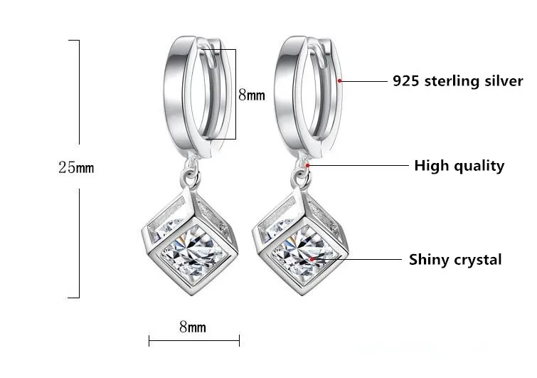 925 Silver Needle Fashion Shiny Square CZ Zircon Ladies Stud Earrings Women Jewelry Female Wedding Gift Wholesale